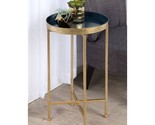 - Gold Finish Metal Round End Table Nightstand with Removable Navy Blue Tray Top