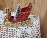 Gold Glittery Santa Sleigh Christmas Holiday Ornament. Measures approx. 4.5" good condition