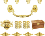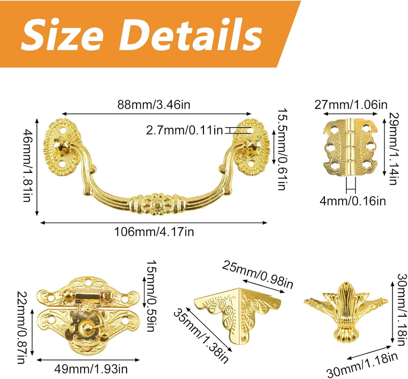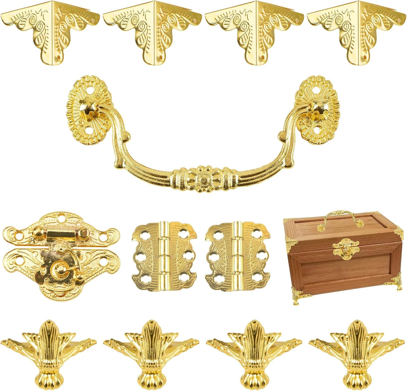 - Gold Jewelry Box Antique Lock Latch Hasp Hinges Handle Box Corner Protectors Kit