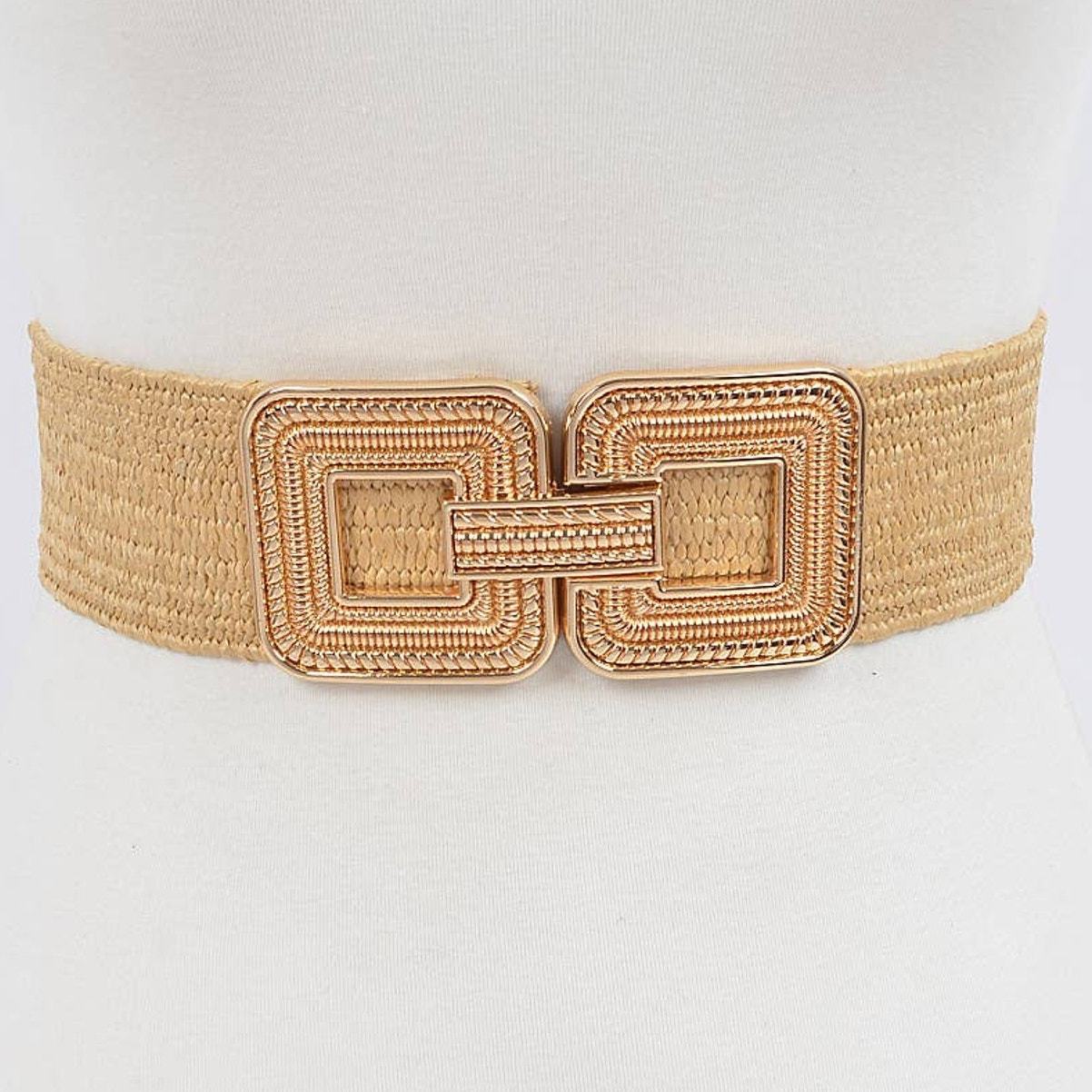 - Gold Metal Buckle Stretch Belt Woven Tan
