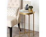 - Gold Metal Round Nightstand End Table with Removable White Tray Top