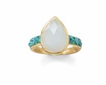 Gold Plated 925 Silver Moonstone & Crushed Turquoise Fashion Ring Sizes 6 to 10