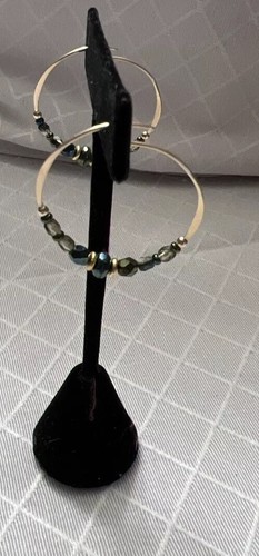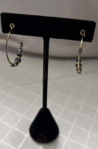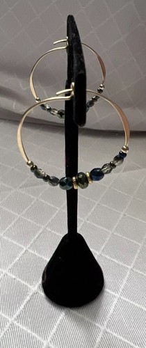 - Gold Plated Hoop Green And Blue Beaded Earrings Fashion Jewelry For Women