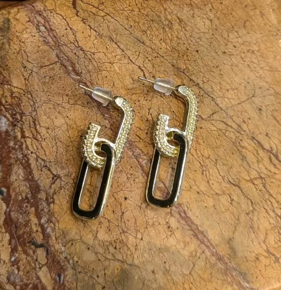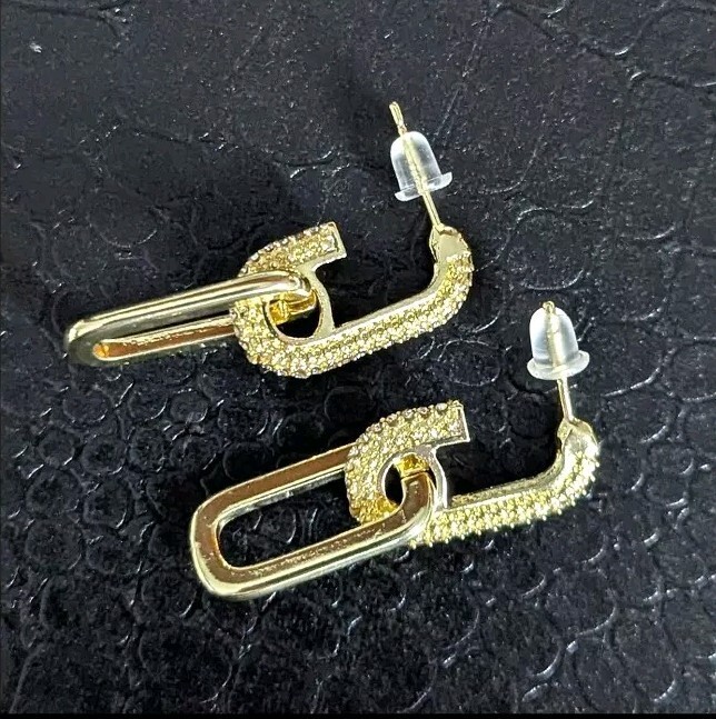 Beautiful double loop rhinestone crystal gold color stud earrings. A perfect touch of class and quiet luxury to your outfit!