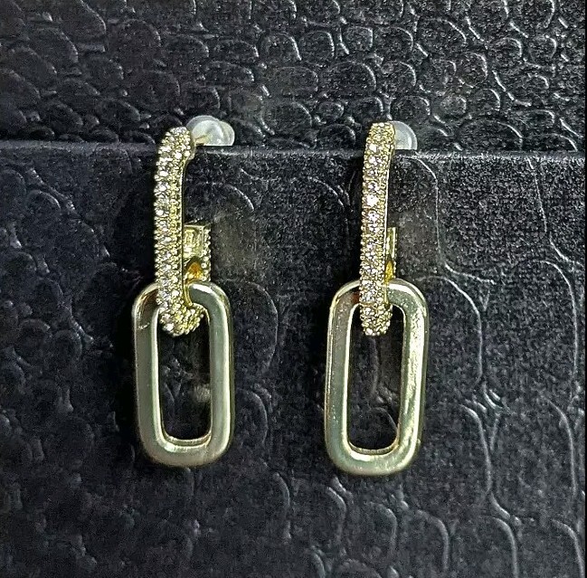 - Gold Rhinestone Crystal Double Loop Drop Post Stud Earrings Quiet Luxury Preppy
