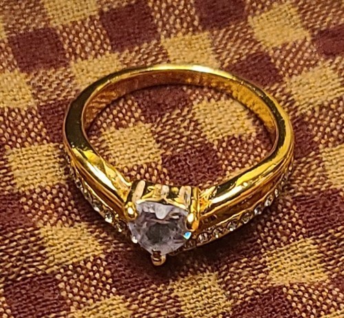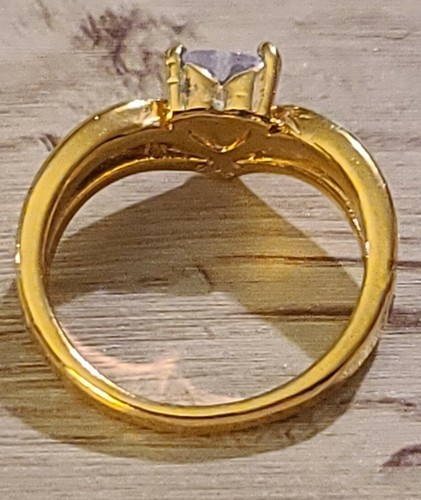 - Gold-Tone Band ~ Heart Moissanite Gem w/Faux Diamonds ~ Women's Size 10 Ring