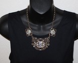 - Gold Tone Clear Rhinestone Necklace Chunky Statement Fashion Jewelry Floral 18"+