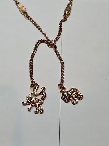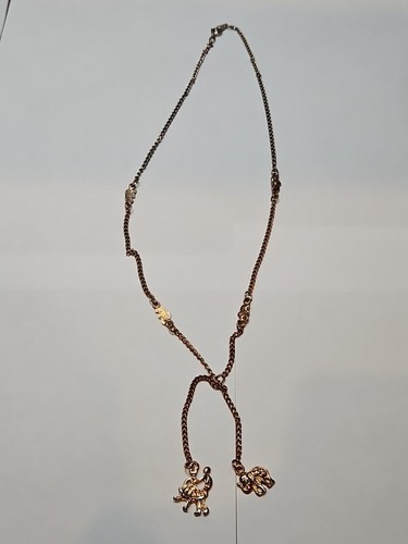 - Gold Tone Necklace/Chain, Elephant Pendant and Pattern, Rope Clasp 18'' Vintage