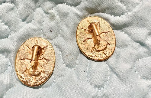 - Gold Tone Snowflake Round Oval Statement Clip On Earrings 1.25 Inch