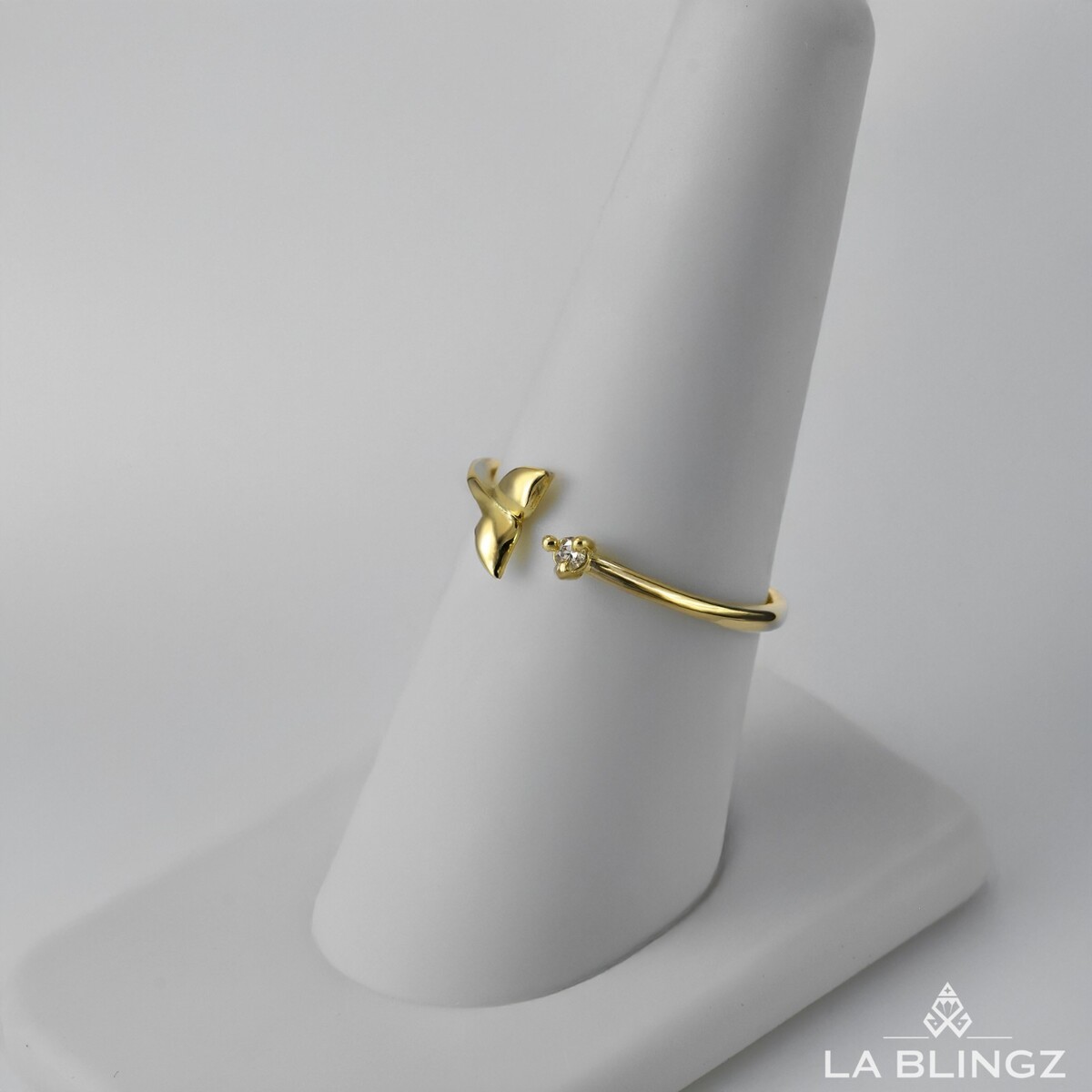 Gold Whale Tail Adjustable Ring with Diamond Accent 10k/14k Dainty Ocean Jewelry