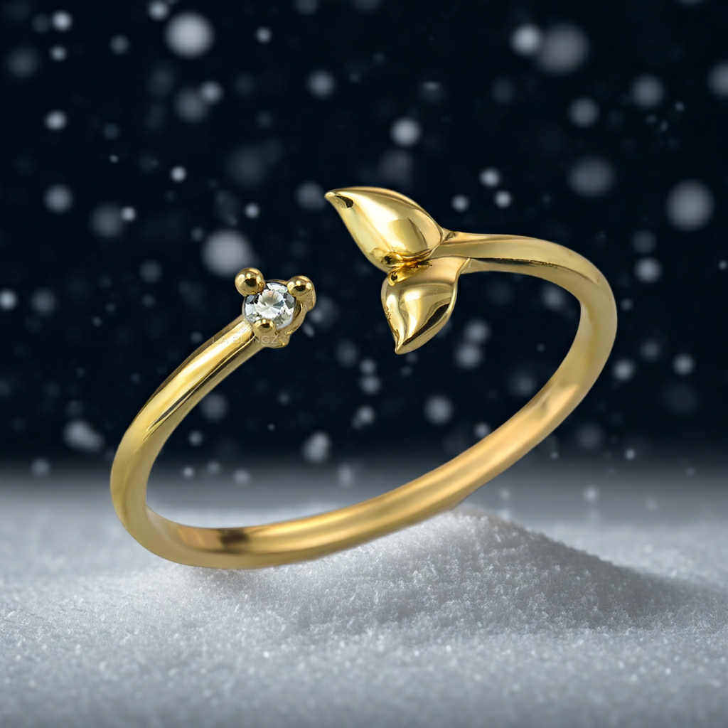 his elegant whale tail ring captures the magic of the sea in fine yellow gold. Featuring a polished whale tail on one end and a sparkling diamond accent on the other, it symbolizes strength, freedom, and the gentle power of the ocean.