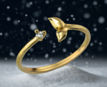 - Gold Whale Tail Adjustable Ring with Diamond Accent 10k/14k Dainty Ocean Jewelry