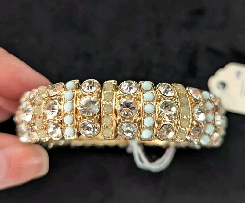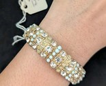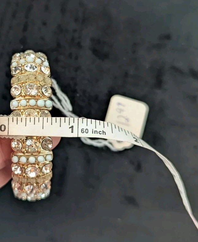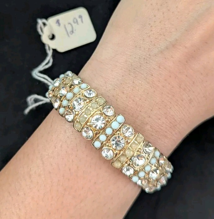 - Gold White Rhinestone Beaded Bracelet Bangle Stretchable Adjustable Boho Preppy