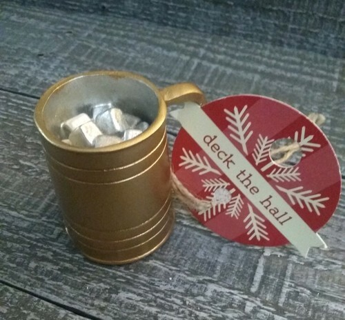 Golden Beer Mug Stein with Ice Cubes Beer or Marshmallows Hot CoCo Christmas Ornament New.