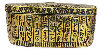 ? This jewelry box is a stunning Egyptian themed masterpiece. We parade the power of the mystical scarab beetles as well as the uraeus cobra of the ancient Egyptian religion. You will love its gold tone on the surface of the box and its convenience for storage.
