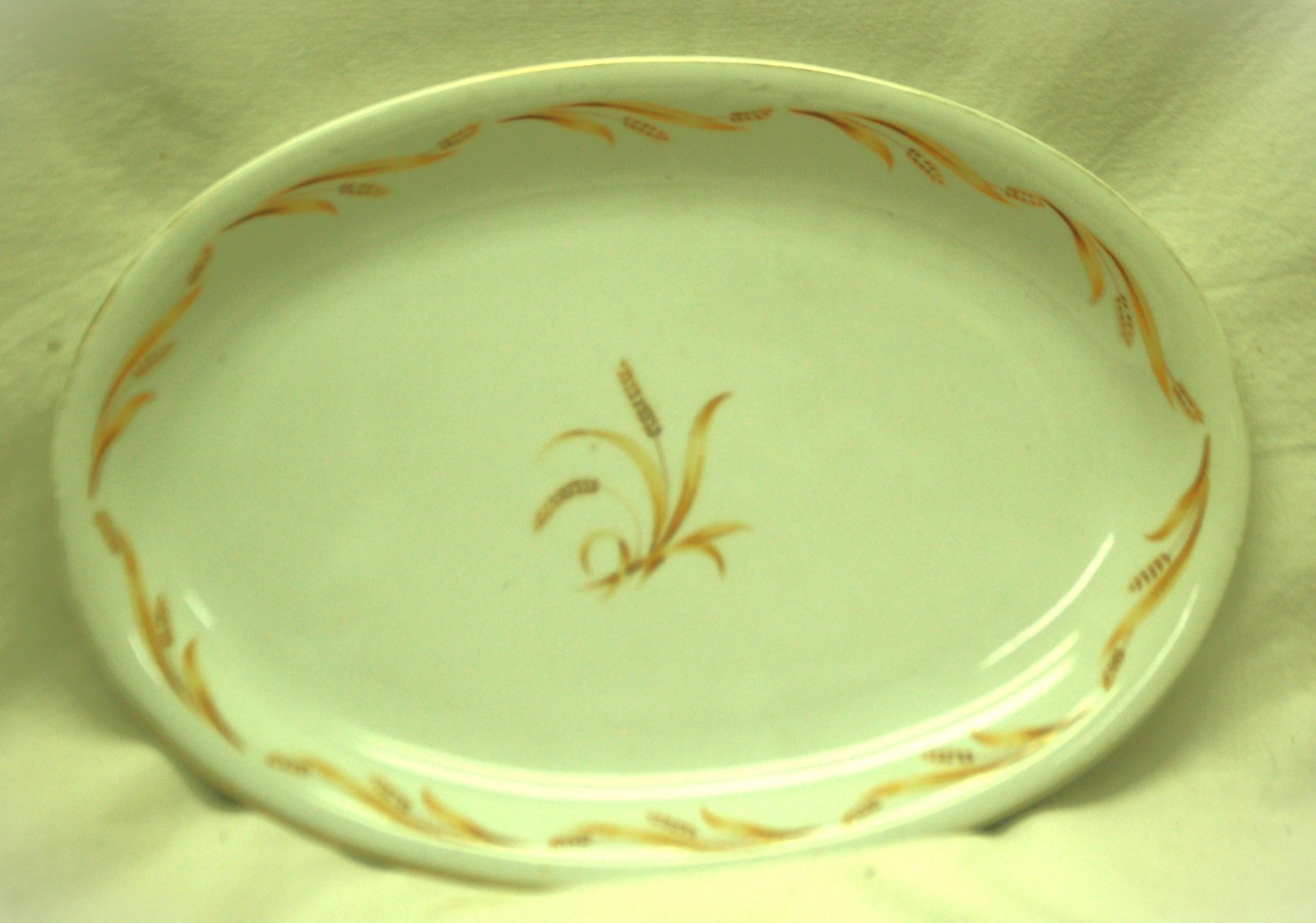 Golden Grain Abalone Oval Serving Platter Japan Tan Wheat on Rim & Center