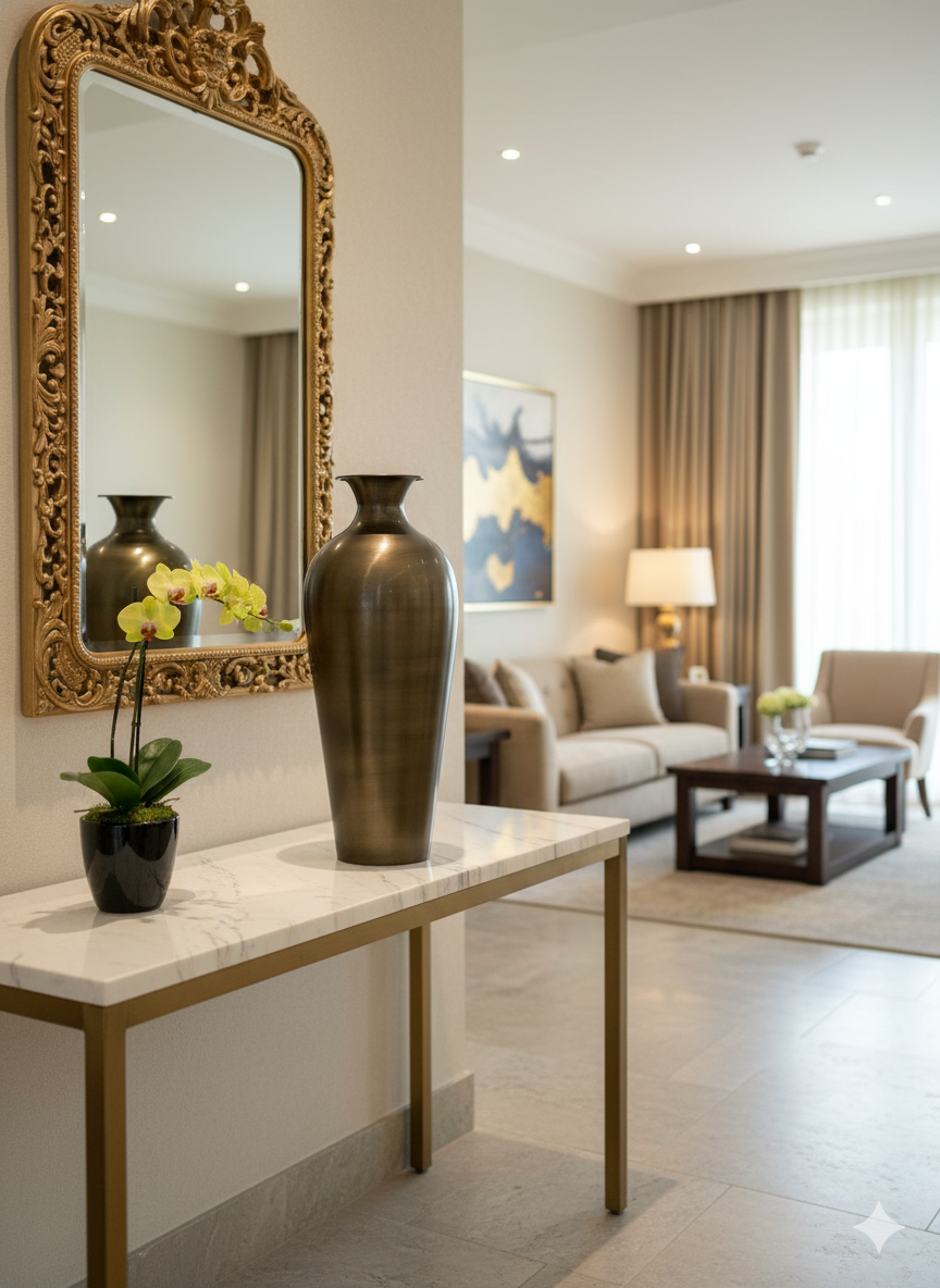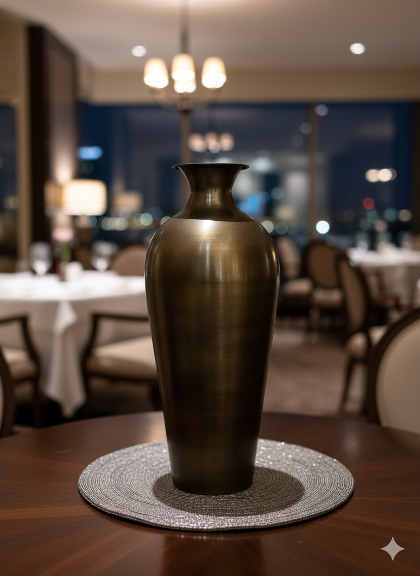- Golden Hammered Metal Flower Vase For Home , Office , Living Room Corner Decor