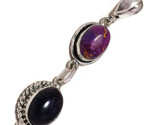 - Goldstone with Purple Turquoise Gemstone 925 Silver Handmade Double Drop Pendant