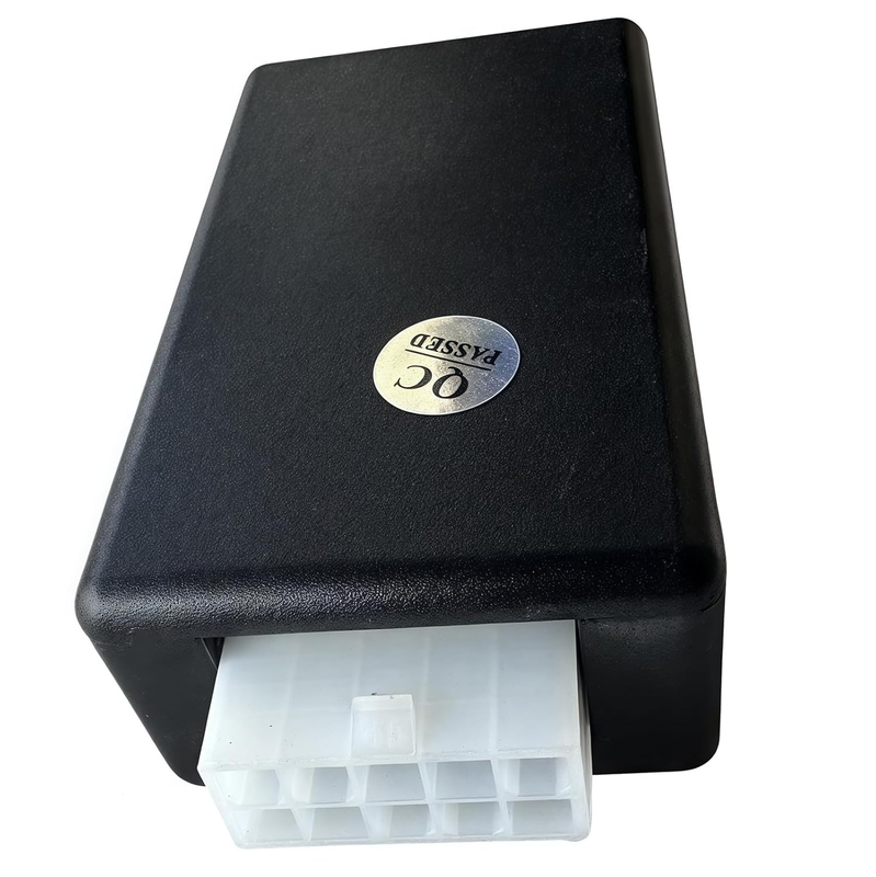 This light control box regulates the lighting system for golf carts, making it compatible with universal deluxe light upgrade kits for Yamaha, Club Car, and EZGO models.