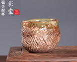 - Gongfu Tea Cup-Handmade Rustic Textured Ceramic w/Dual Glaze & Burgundy Interior