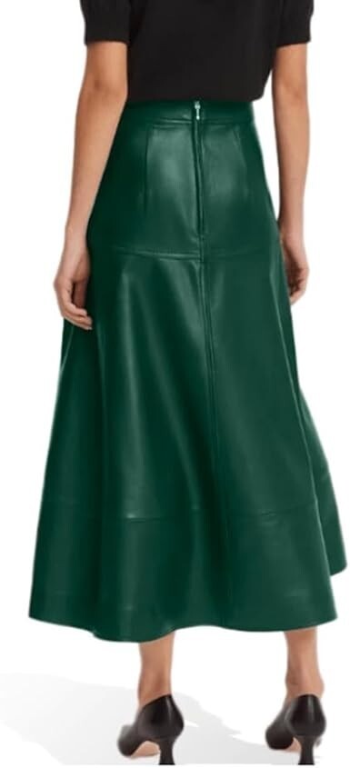 - Gonna da donna in pelle di agnello verde in vera pelle elegante formale da...