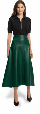 Gonna da donna in pelle di agnello verde in vera pelle elegante formale da...