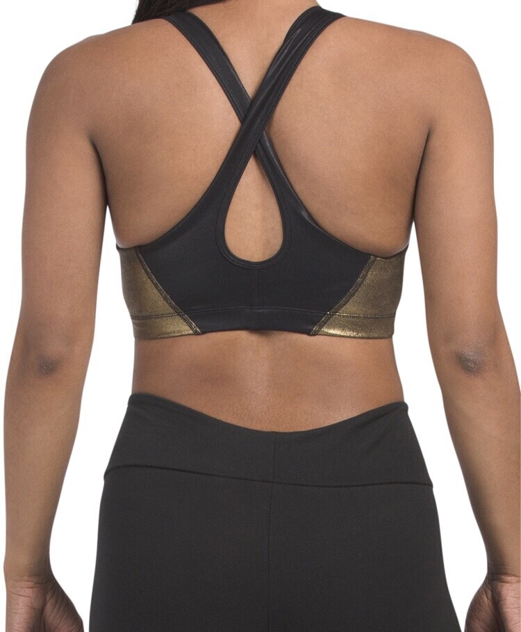 - Good American Upper Cut Black Gold Silver Metallic Sports Bra Top Sz 0 (XS) NWT