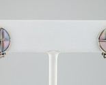 - Gorgeous Mother-of-Pearl Mosaic Disc Huggie Clip-On Earrings in Sterling Silver