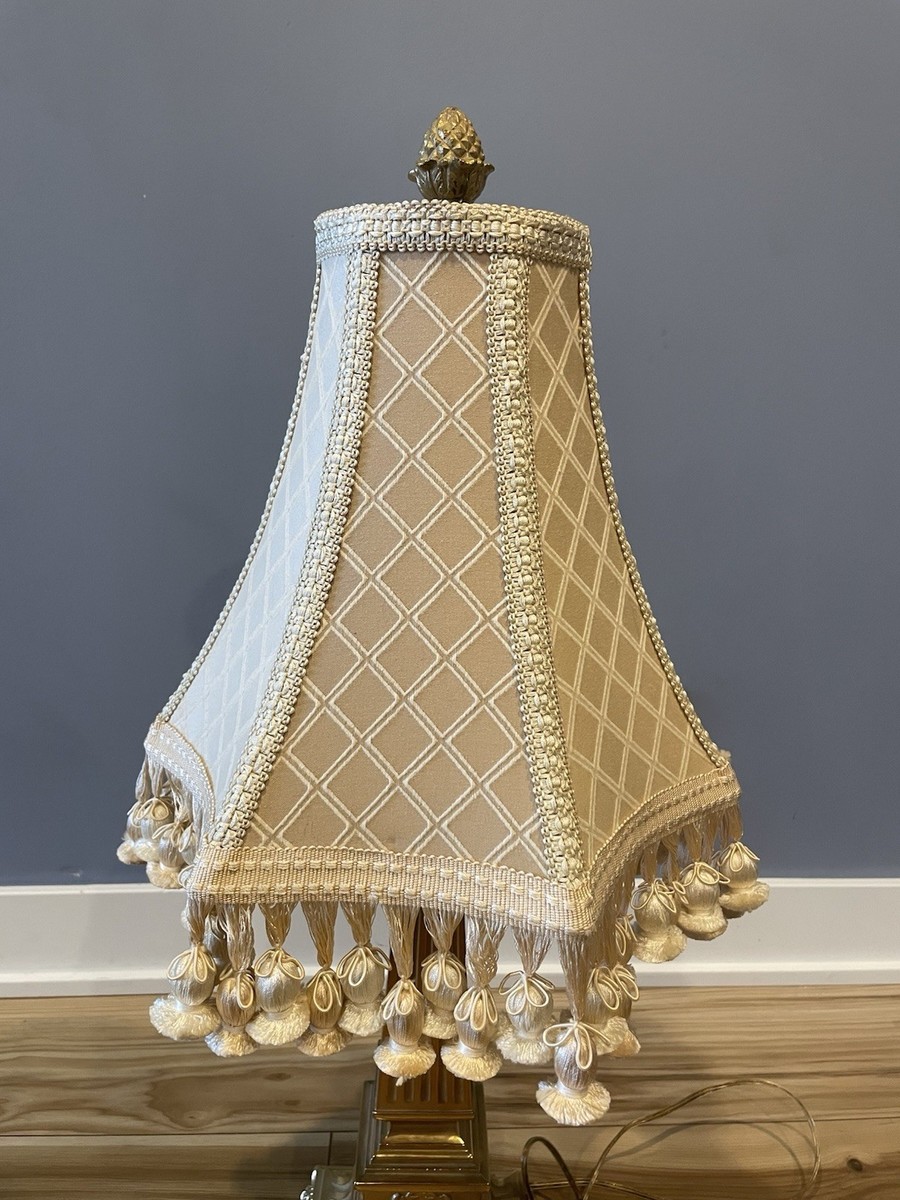 - Gorgeous Vintage Brass Classical Column Table Lamp with Tassel Shade Heavy Bsh
