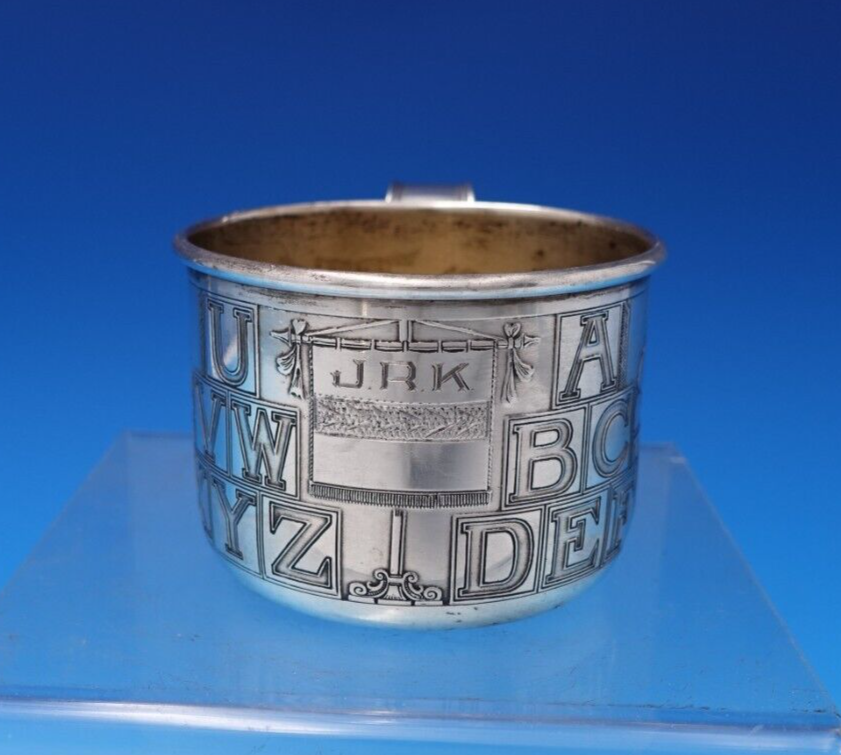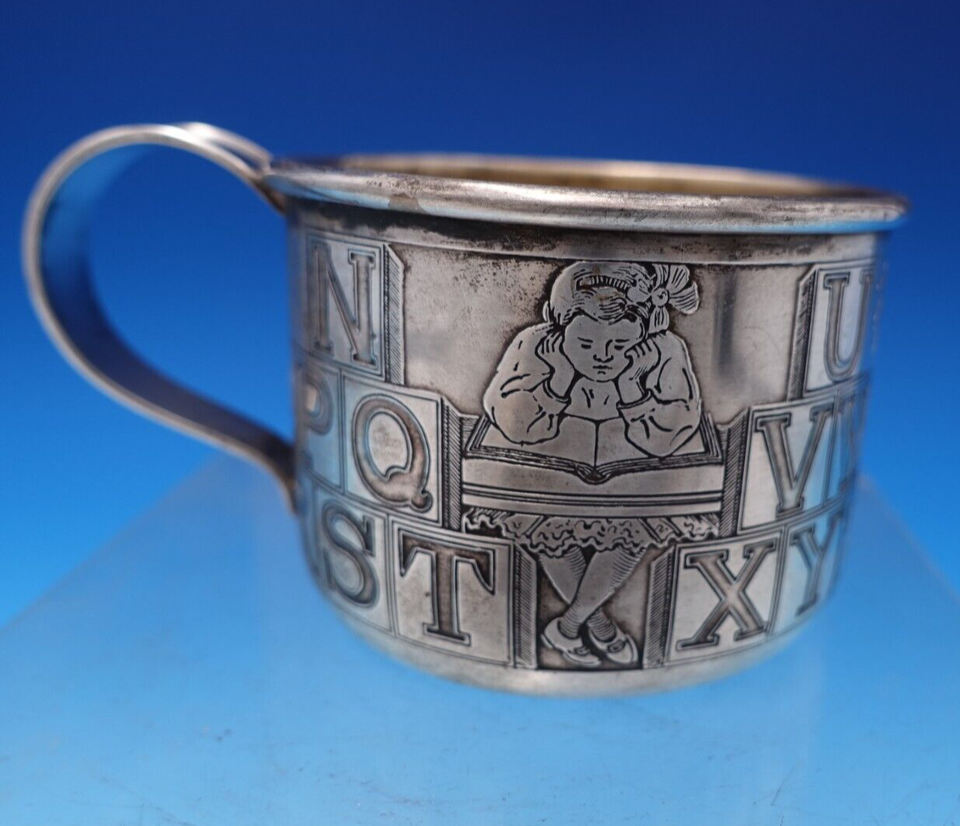 - Gorham Sterling Silver Baby Cup w/ GW Alphabet Children Studying #W6-21 (#7533)