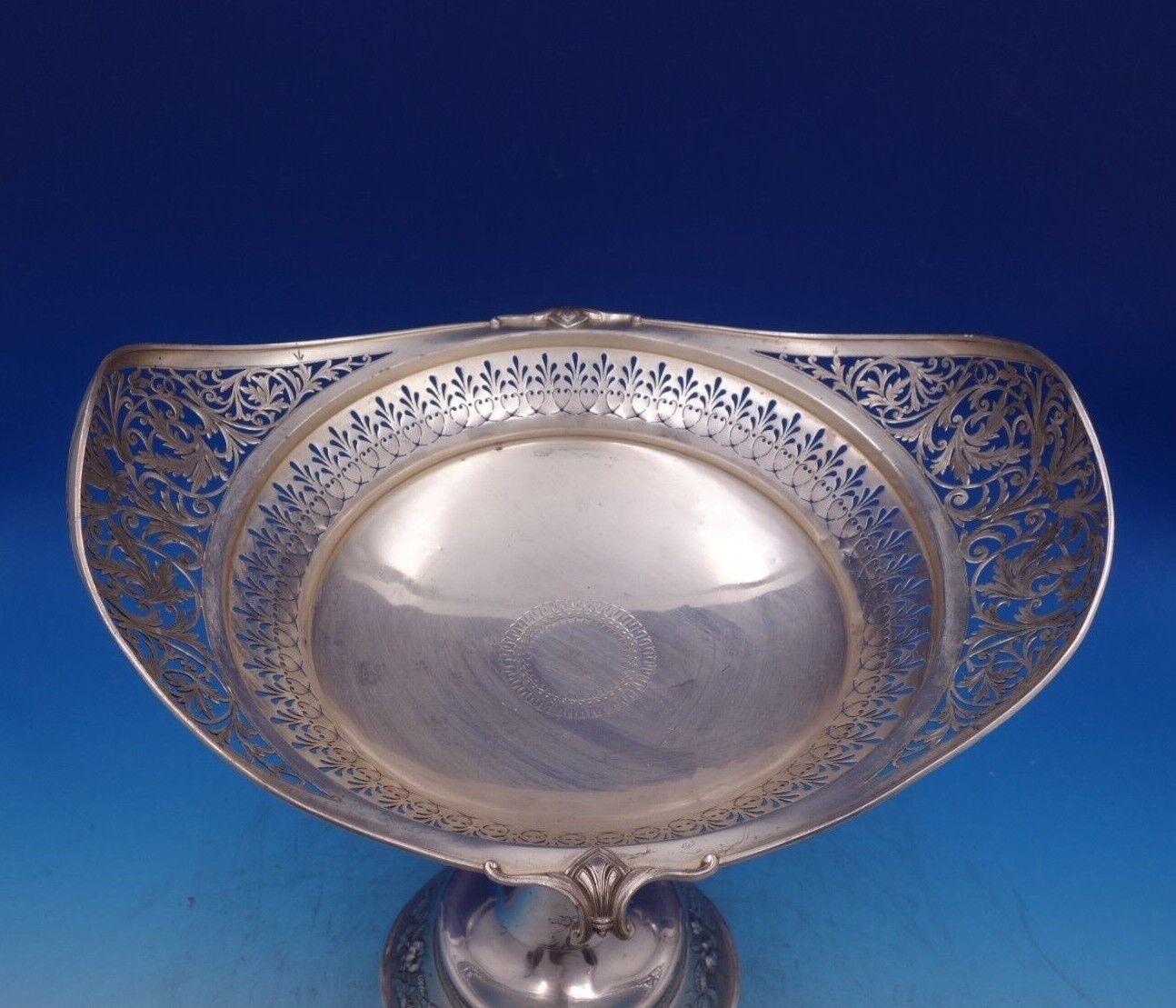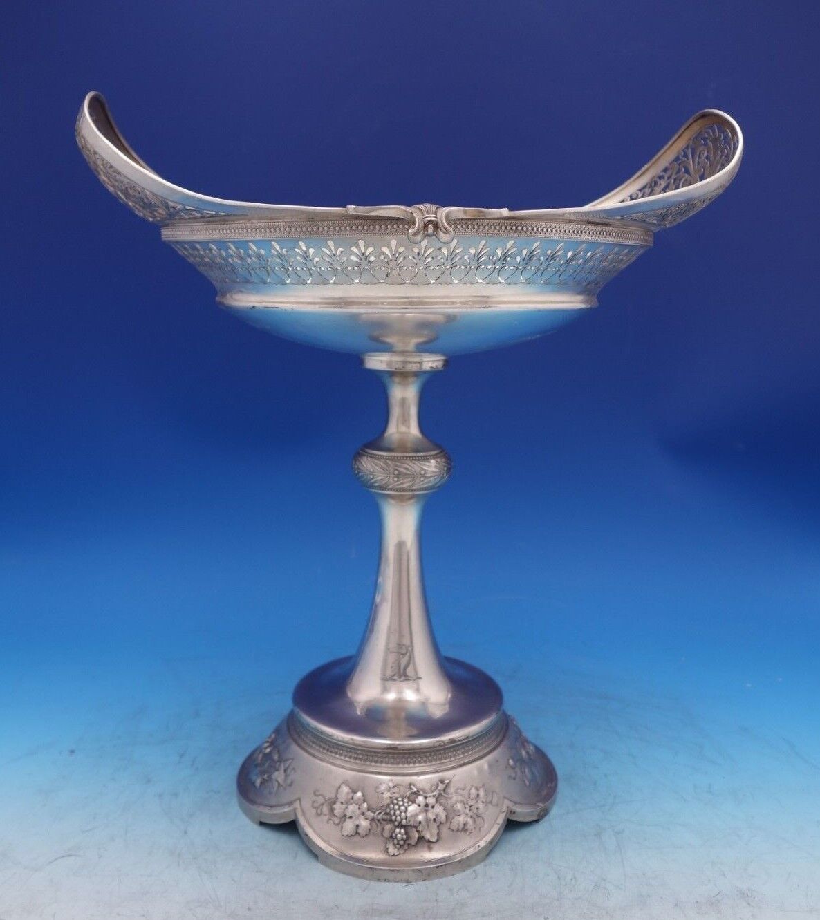 Impressive Gorham sterling silver large centerpiece, hand pierced with engravings (see photos). It also features a four sided base with chased fruit and flowers. This piece is marked #730 with a "D" mark for 1871.