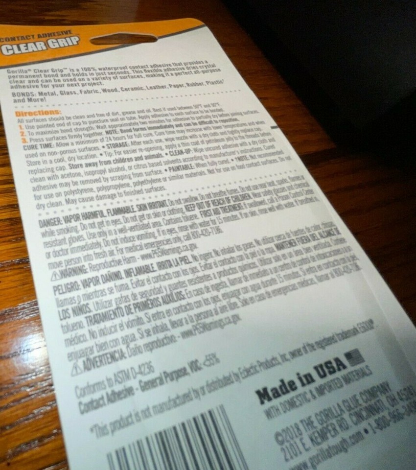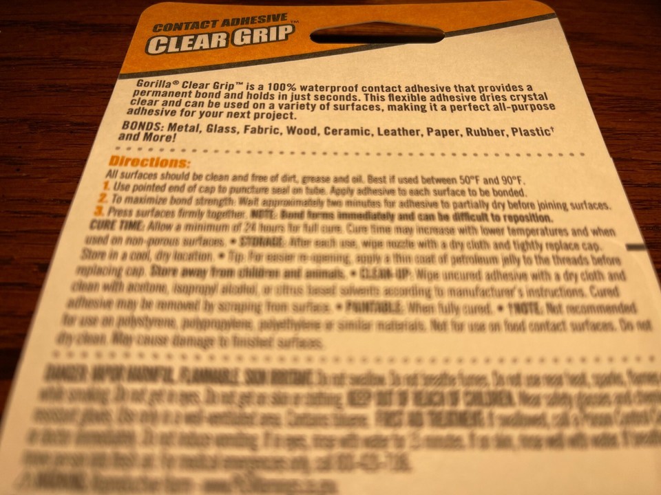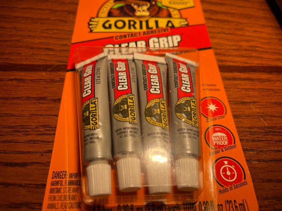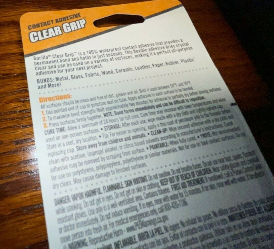 Gorilla Clear Grip is a flexible, fast-setting, crystal clear contact adhesive that creates a strong, permanent bond.