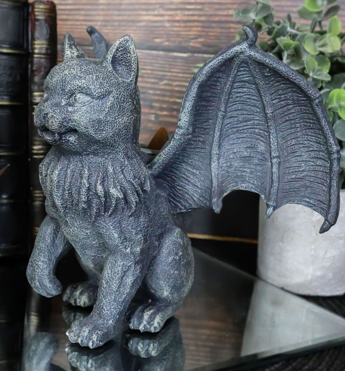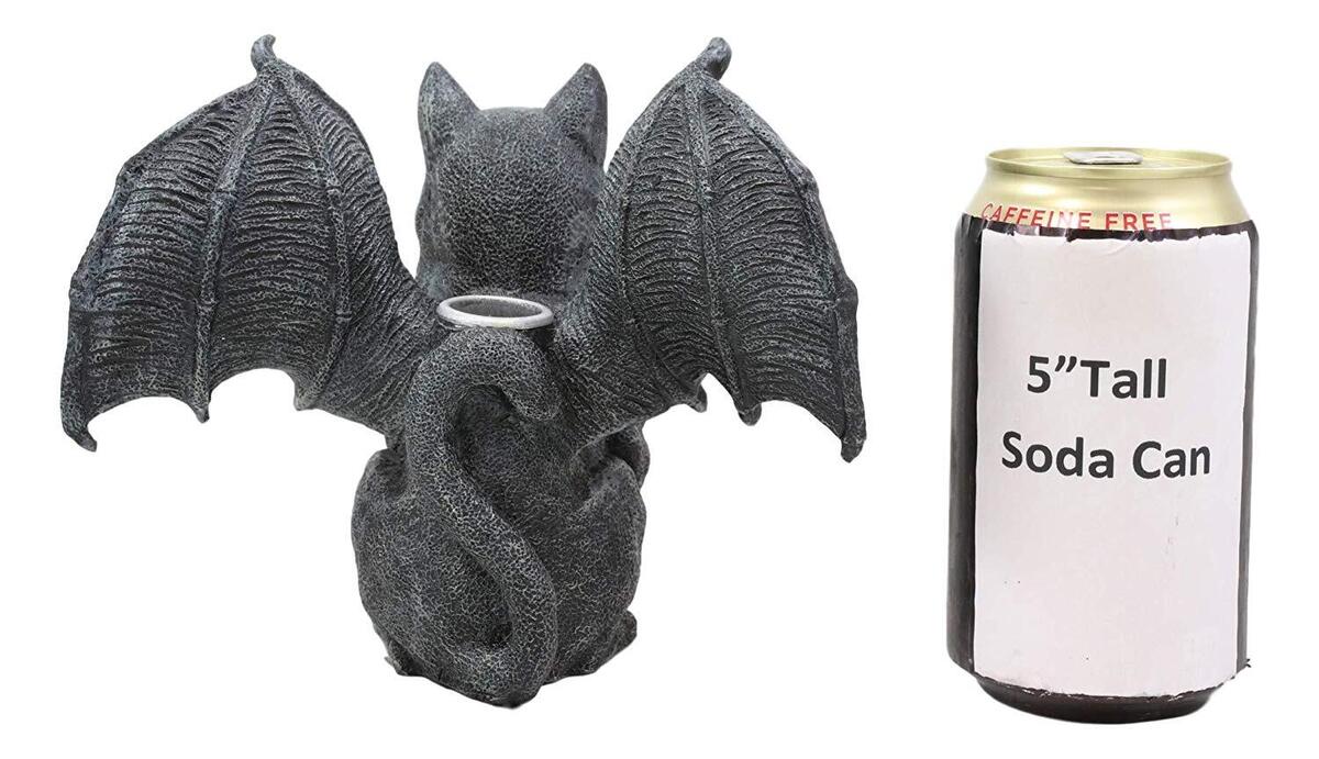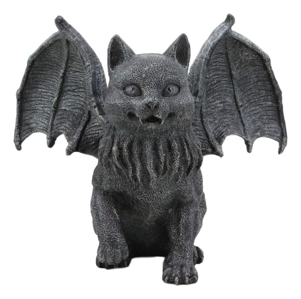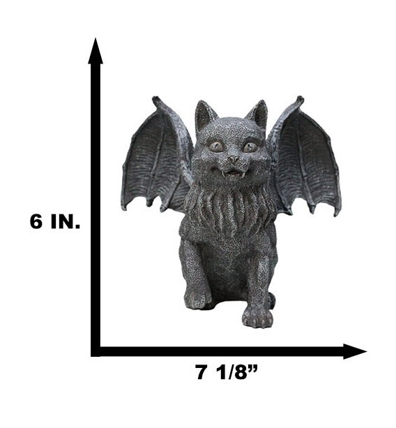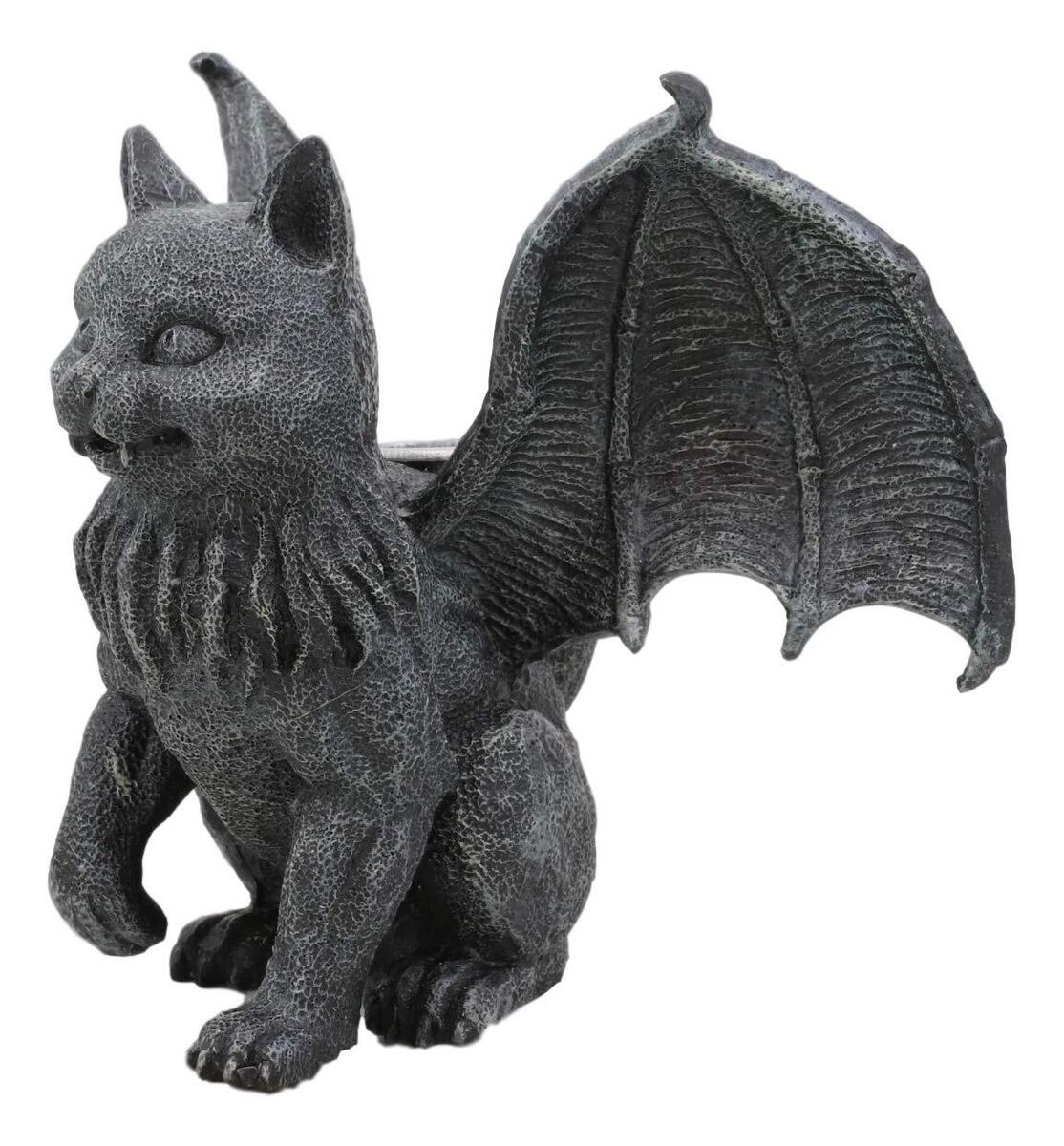 ? This mystical figurine features a feline gargoyle or catgoyle! This kitty has vampire fangs and a pair of bat wings. The perfect sentinel to guard your collection, any cat lover is sure to love this statue! This cat gargoyle does double duty as a decorative statue as well as a functional candle holder.