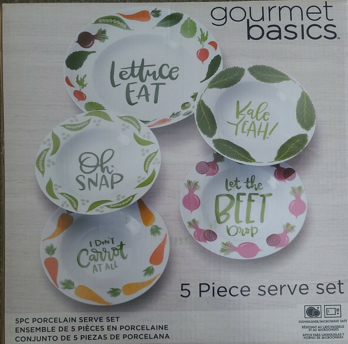 Gourmet Basics by Mikasa ~ Quirky Vegetable Pun ~ Porcelain ~ 5 Piece Serve Set