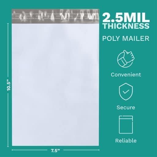 - GPI - 7.5 x 10.5, 2.5 Mil Thick, Bulk Pack Of 100 - WHITE POLY MAILER ENVELOPES