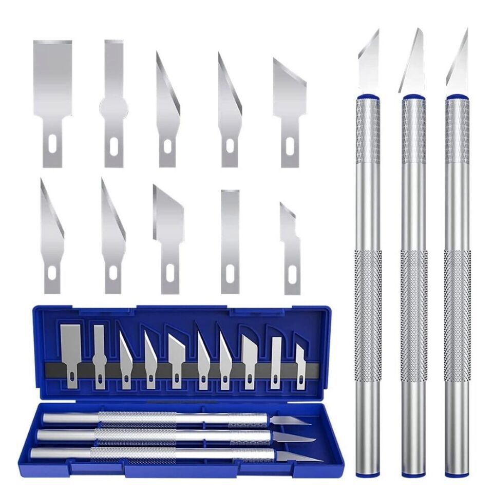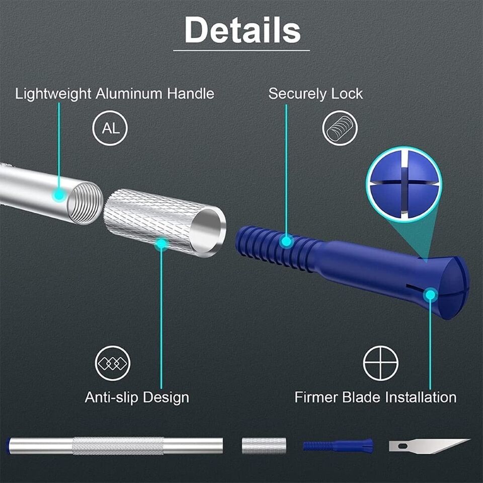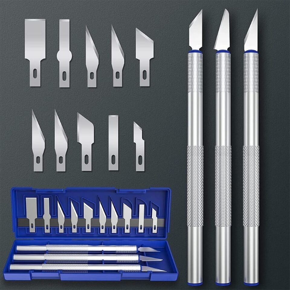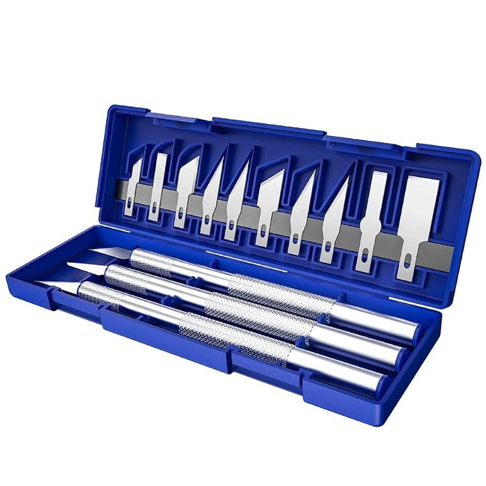 Equipped with 3pcs craft blades handles(self-contained blades), and 10 pieces of interchangeable blades