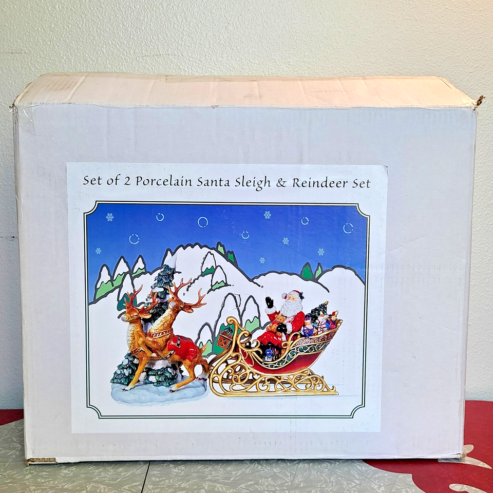 - Grandeur Noel 2003 Porcelain Santa Sleigh & Reindeer Collector's Edition w/ Box