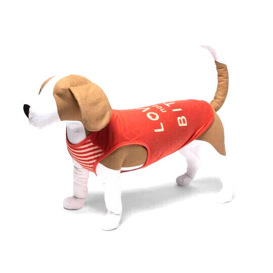 Add some punny style to your pets day with the Graphic 'Lover Not a Biter' Tank Top from Boots Barkley. This pet tank top is designed for both dogs and cats to wear and features a red hue with text that reads "Lover Not a Biter" for a fun look. This pullover tank top is made from soft fabric with just a touch of spandex so your pet can have a little more mobility and comfort. *Graphic dog and cat tank top *Features the words Lover Not a Biter *Made from soft fabric with spandex *Fits comfortably and securely over the torso *Pullover style Shipped from a smoke free environment.