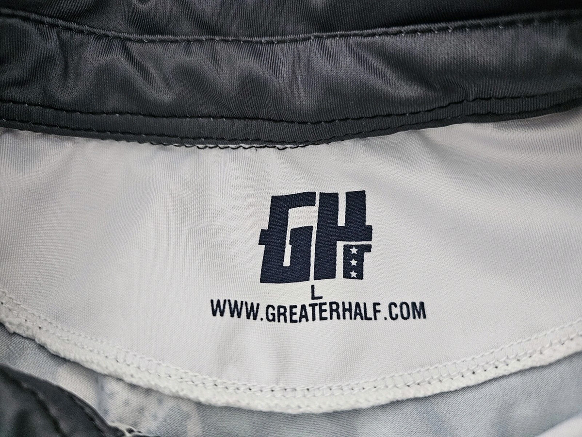 The Greater Half Men's Join Or Die The Punisher Performance Golf Polo in size L features a collared neckline with a button closure and a spread collar style. Made of polyester and spandex microfiber fabric, this gray polo shirt is designed for comfort and easy care with stretch and side slits for added mobility. The geometric pattern and Punisher logo accents give it a unique style, suitable for travel, activewear, or casual wear, making it a versatile option for summer, fall, or spring seasons. Perfect for golfing, the shirt showcases a blend of freedom and logo themes with a modern twist.