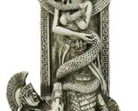 ? Unleash the power of ancient mythology with this stunning Medusa Figurine, featuring the fearsome Gorgon standing on an altar throne. With her iconic hair made of snakes and a giant serpentine tail coiling beneath her, Medusa exudes an aura of danger and mysticism. The dramatic scene is further intensified by a Greek warrior, fallen at her feet, capturing the essence of Medusa's mythic wrath. This intricately detailed statue is a perfect addition for collectors of Greek mythology.