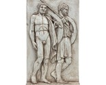 Este hermoso relieve representa a dos antiguos guerreros griegos, símbolos de valentía y honor. Con detalles intrincados, la escena refleja el arte y la fuerza de la escultura griega clasica. Inspirada en la antigüedad, esta replica es perfecta para los amantes del arte clasico y la historia.