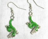 SILVER ALLOY GREEN ENAMEL CURLED CHINESE DRAGON CHARMS ON HOOK WIRE POSTS