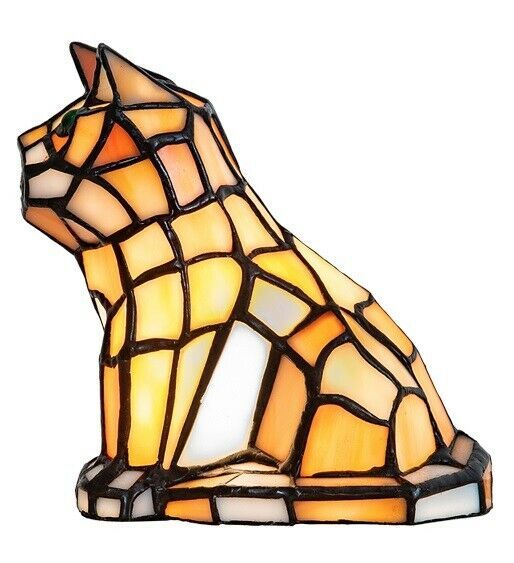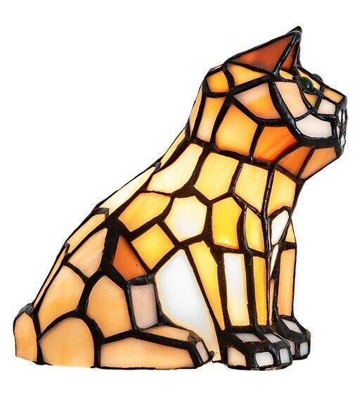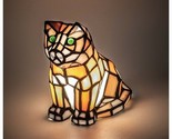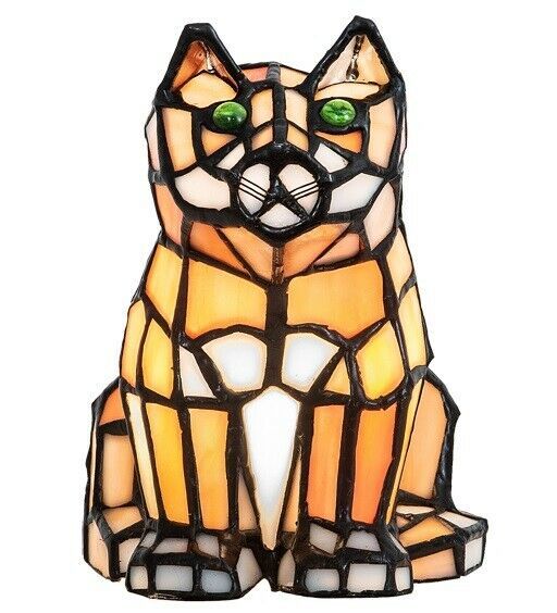 - Green Eyed Orange Cat Stain Glass Accent Lamp 7" Halloween Decor