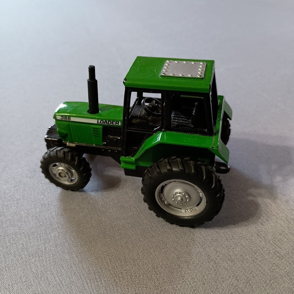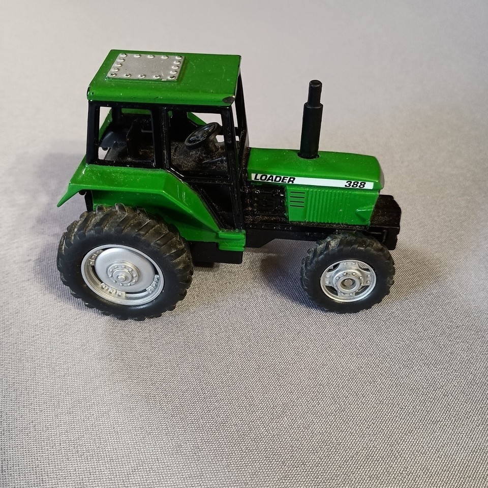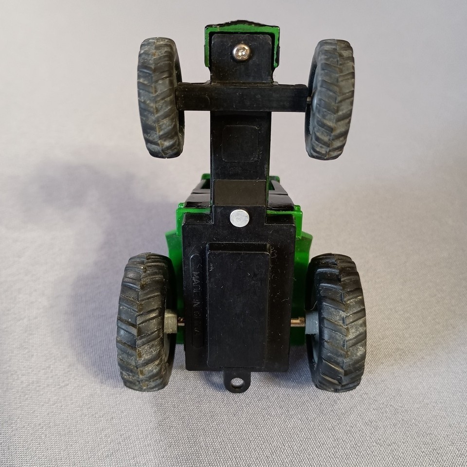 This green toy farm tractor is perfect for any young child aged 4-7 who loves farm vehicles. Made in China with durable diecast and plastic materials, this toy is built to last and provides hours of fun playtime. The tractor makes a sound when pushed or pulled back. detailed with realistic features, making this a great addition to any collection. Get this fun and interactive toy for your child today! Normal wear.