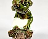 - Green Frog Figurine 2.5in Sitting with Book Stoneware Toad Statue VTG Cute