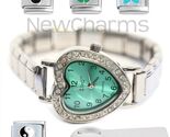 - Green Heart Italian Charm Watch Bracelet Plus Charm Tool & Enamel Charms