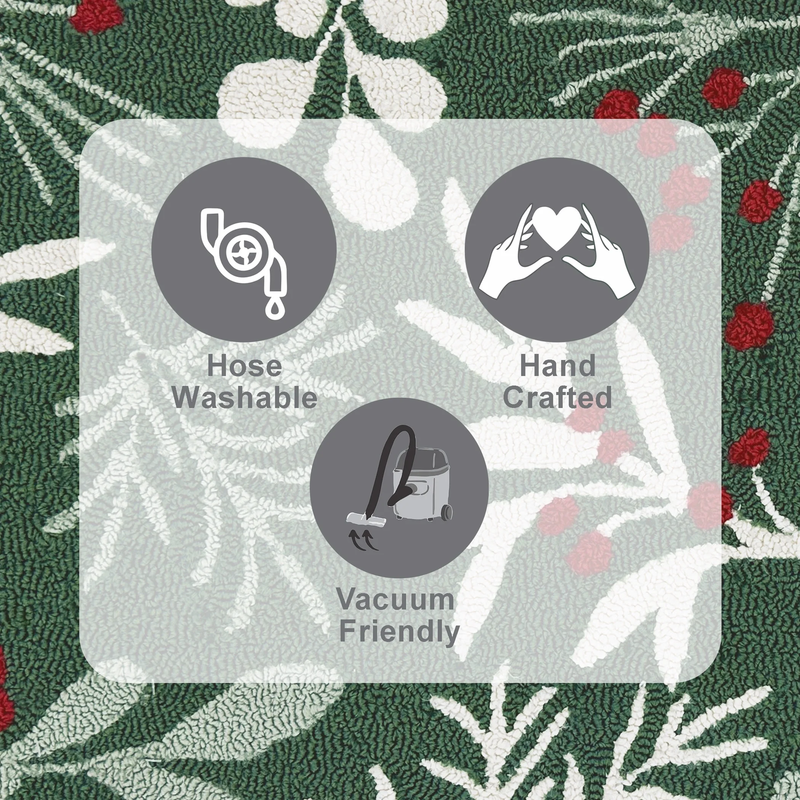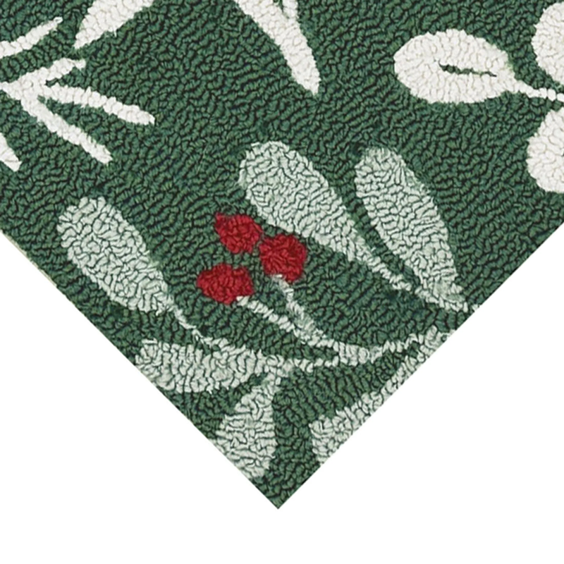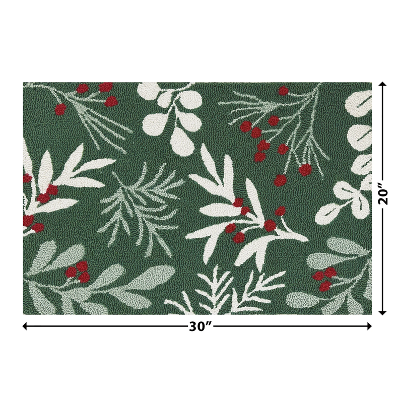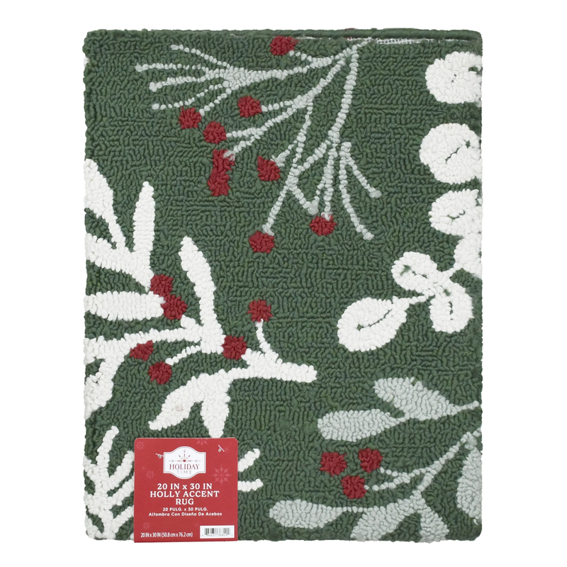 Add a festive touch to your home with the Holiday Time Green Holly Accent Rug. Crafted from 100% polypropylene with a hand-hooked construction, this rug features a classic holiday pattern of white and light green holly sprigs adorned with bright red berries on a rich dark green background. The 20" x 30" size is perfect for adding seasonal cheer to entryways, kitchens, or bathrooms. Designed for durability and charm, this rug brings warmth and color to your holiday decor while holding up to daily use throughout the season.