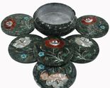 - Green Marble Round Coaster Set Floral Inlay Marquetry Arts Kitchen Decor E1965