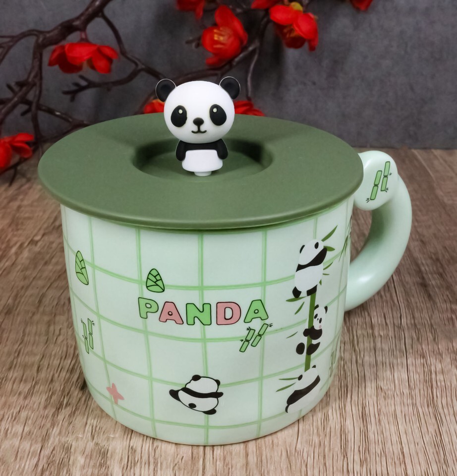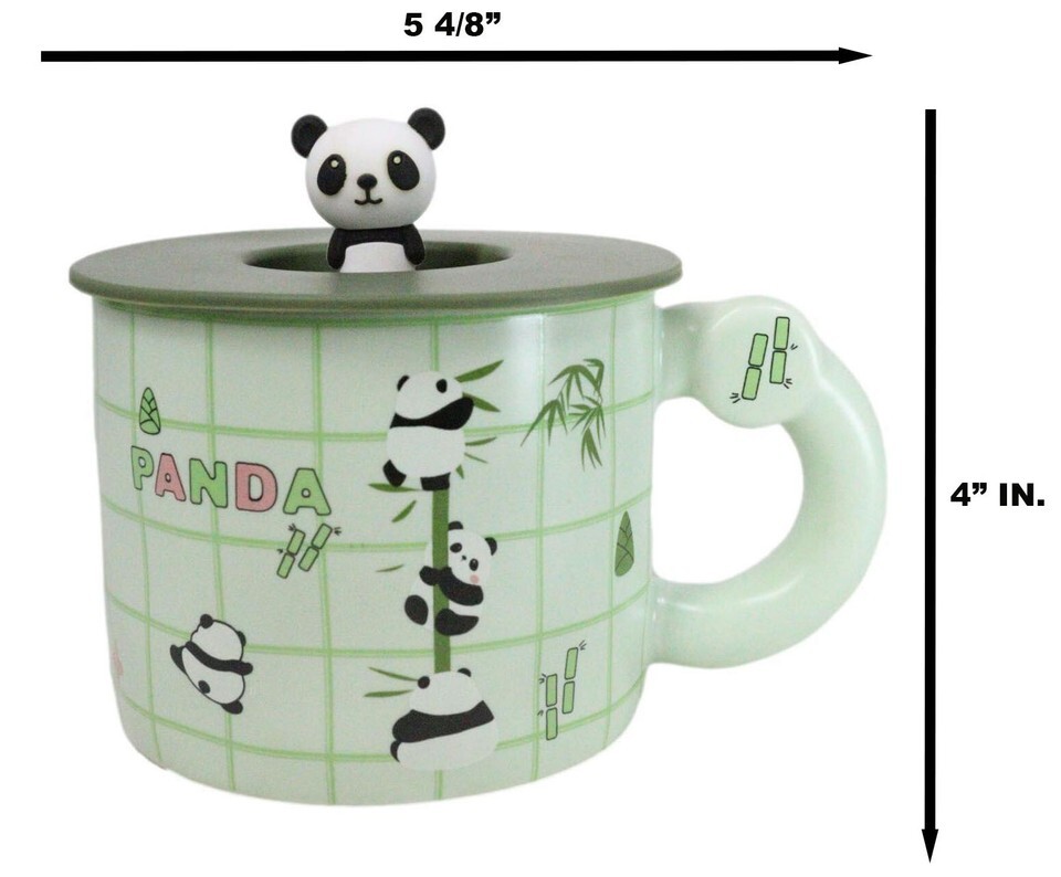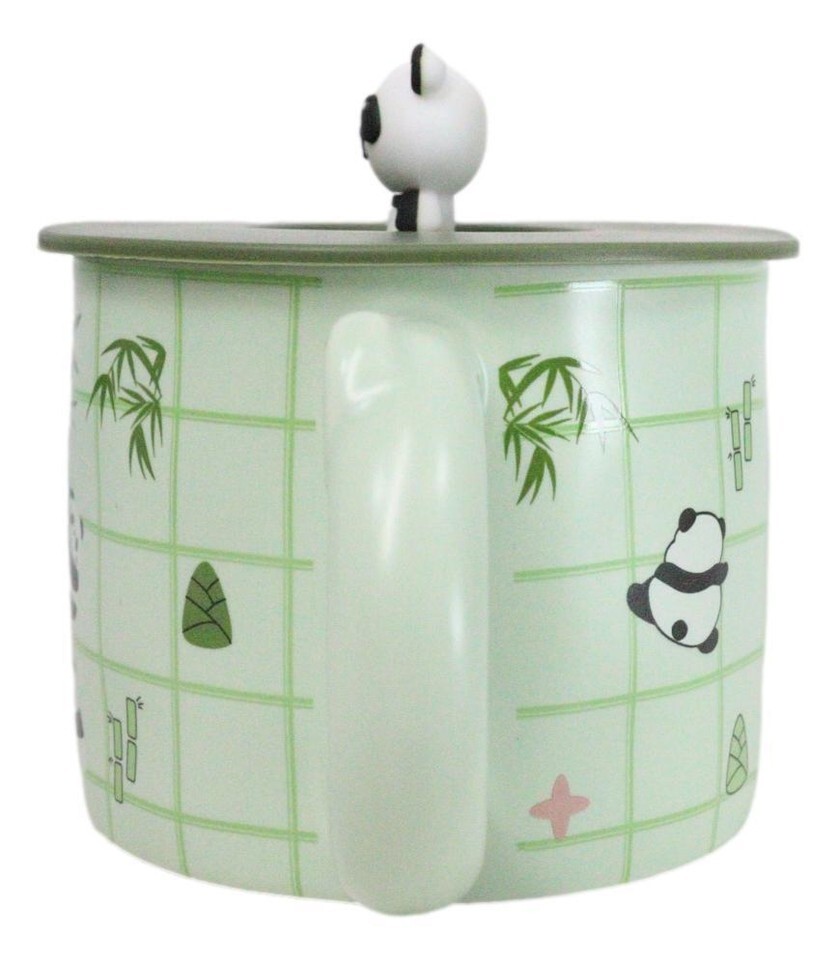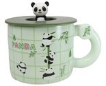 - Green Panda Bears Climbing On Bamboo Mug With Anime Panda Figurine Handle Lid