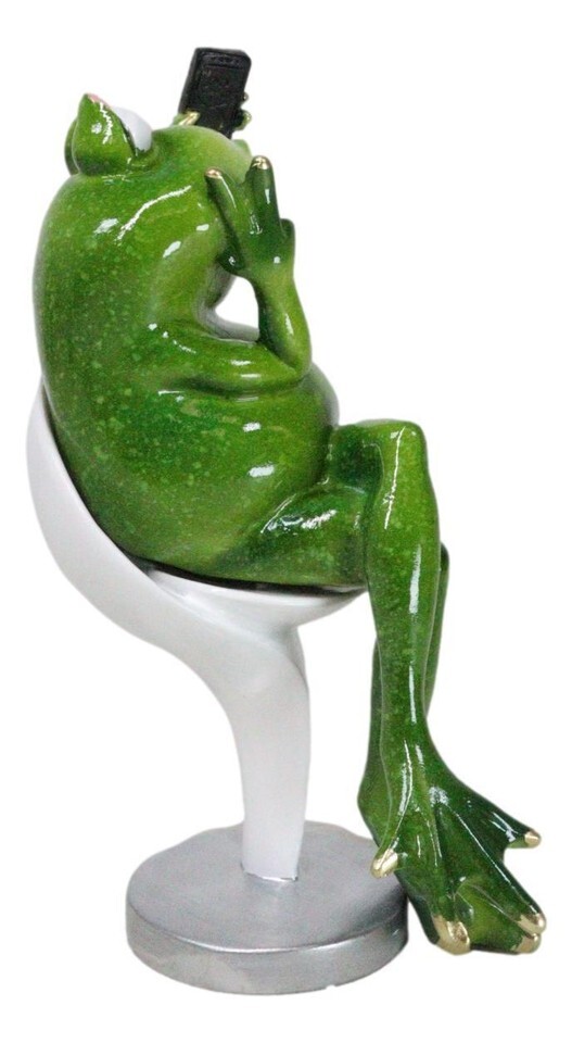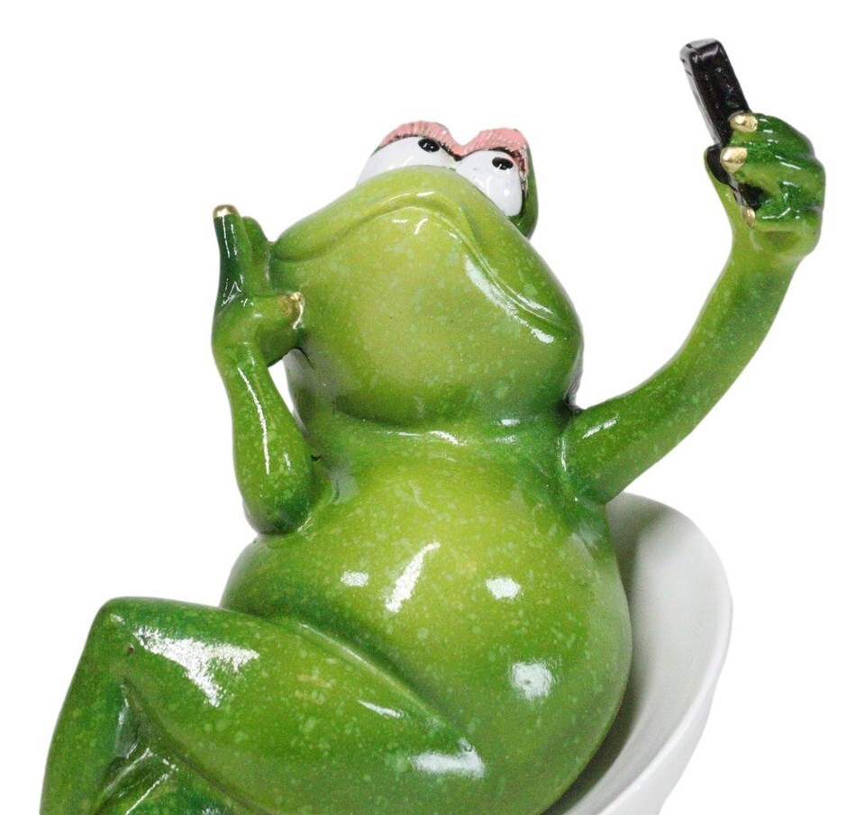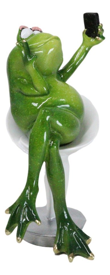 - Green Queen Diva Lady Frog Taking Selfie Seated On Salon Chair Figurine 7"H